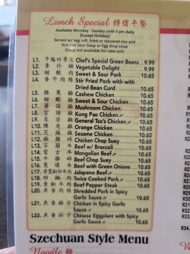 Szechuan Style Menu Noodle